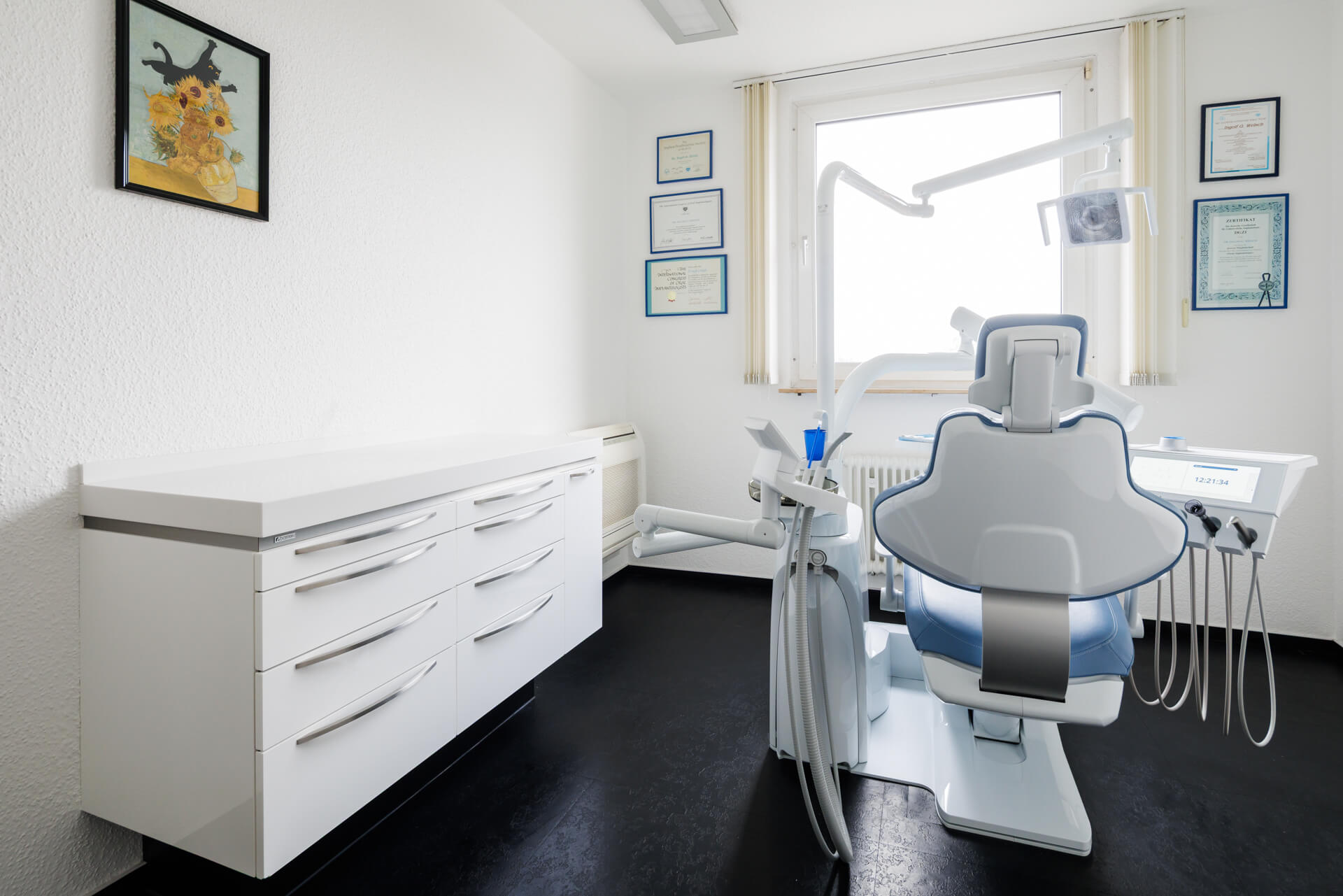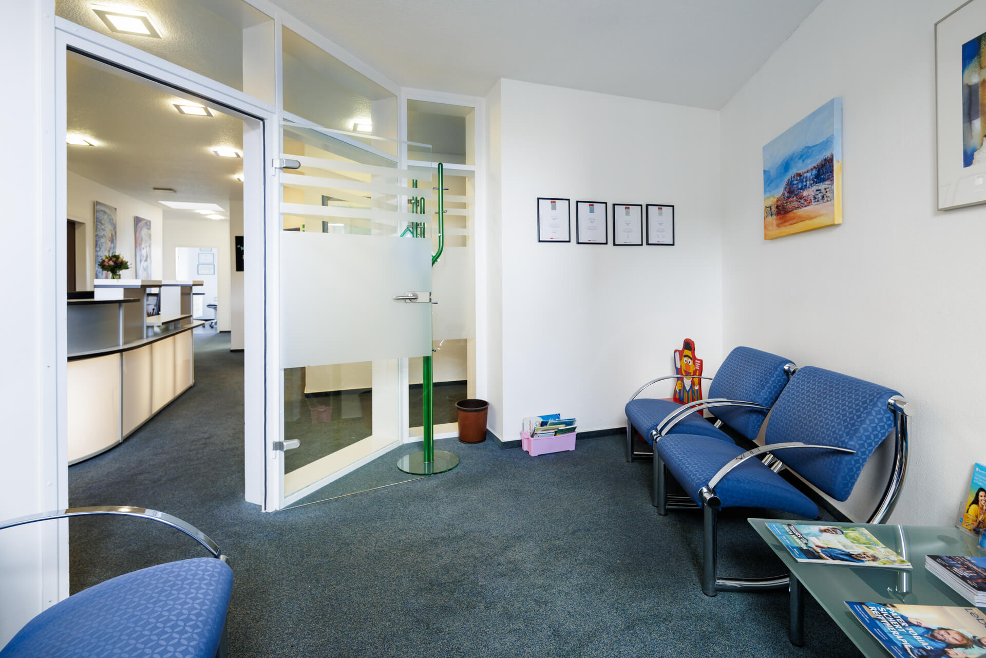 Wir haben für Sie eine Auswahl an Bildern aus unserer Praxis zusammengestellt. So erhalten Sie einen ersten Eindruck von unserem Team und unseren Räumlichkeiten. Neben der technisch hochwertigen Ausstattung ist es uns sehr wichtig, dass sich die Patienten bei uns wohlfühlen und wir sie in einer angenehmen Atmosphäre behandeln.